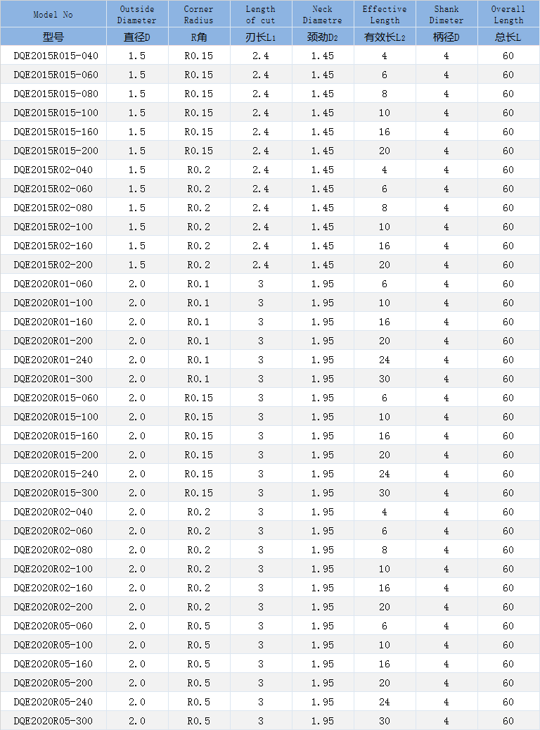 二刃深溝圓鼻銑刀-石墨圓鼻銑刀